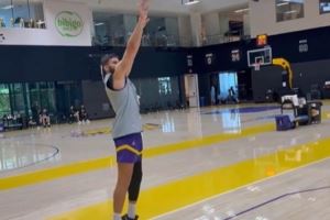 1. 股四头肌拉伤恢复中!湖记晒克莱伯训练 三分线外接球投篮