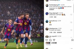 下一篇:染红离场!德容社媒庆祝取胜:球队展现很棒的态度,收获重要胜利