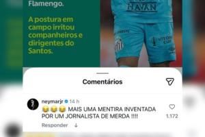 本轮巴甲联赛结束后,有媒体报道称内马尔曾主动联系主帅沃伊沃达,试图解释自己在比赛中的争议行为。对此,内马尔在ge新闻网Instagram推文评论区直接回应:“这又是某个垃圾记者编造的谎言。”