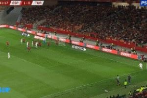 1. 居尔为土耳其破门,这是西班牙本届世预赛的第一粒丢球